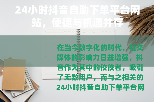 在当今数字化的时代,社交媒体的影响力日益增强,抖音作为其中的佼佼者,吸引了无数用户,而与之相关的24小时抖音自助下单平台网站也应运而生,为众多用户提供了一种全新的服务模式。