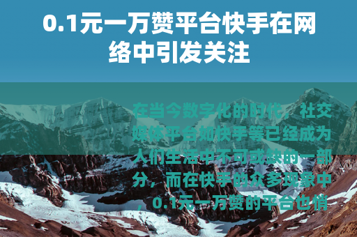 在当今数字化的时代,社交媒体平台如快手等已经成为人们生活中不可或缺的一部分,而在快手的众多现象中,0.1元一万赞的平台也悄然兴起,引起了不少人的注意。