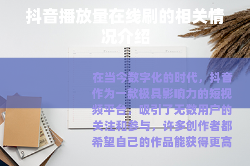 在当今数字化的时代,抖音作为一款极具影响力的短视频平台,吸引了无数用户的关注和参与,许多创作者都希望自己的作品能获得更高的播放量,从而扩大影响力和受众群体,而抖音播放量在线刷这一现象也随之出现。