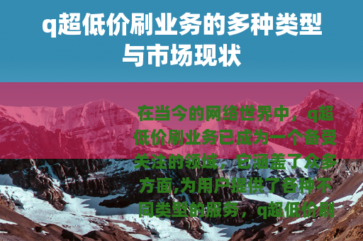 在当今的网络世界中,q超低价刷业务已成为一个备受关注的领域,它涵盖了众多方面,为用户提供了各种不同类型的服务。