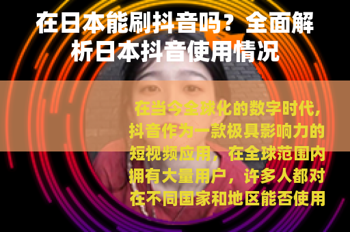 在当今全球化的数字时代,抖音作为一款极具影响力的短视频应用,在全球范围内拥有大量用户,许多人都对在不同国家和地区能否使用抖音充满了好奇,其中一个常见的问题就是:在日本能刷抖音吗?