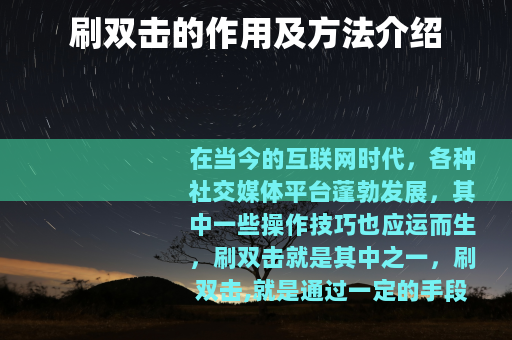 在当今的互联网时代,各种社交媒体平台蓬勃发展,其中一些操作技巧也应运而生,刷双击就是其中之一,刷双击,就是通过一定的手段增加视频或其他内容的点赞数和评论数中的双击量。