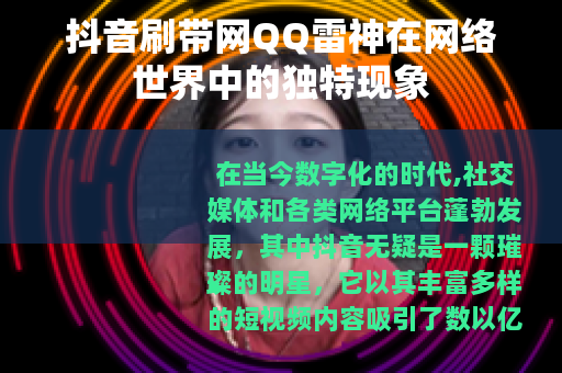 在当今数字化的时代,社交媒体和各类网络平台蓬勃发展,其中抖音无疑是一颗璀璨的明星,它以其丰富多样的短视频内容吸引了数以亿计的用户,成为人们日常生活中不可或缺的一部分,而在抖音的广阔生态中,出现了一种与QQ雷神相关的独特现象,那就是抖音刷带网QQ雷神。