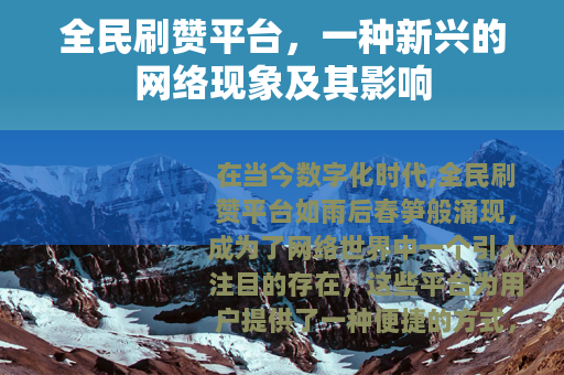 在当今数字化时代,全民刷赞平台如雨后春笋般涌现,成为了网络世界中一个引人注目的存在,这些平台为用户提供了一种便捷的方式,让他们能够通过一定的操作获取大量的点赞、评论和关注,从而在虚拟的社交网络中迅速提升自己的人气和影响力。