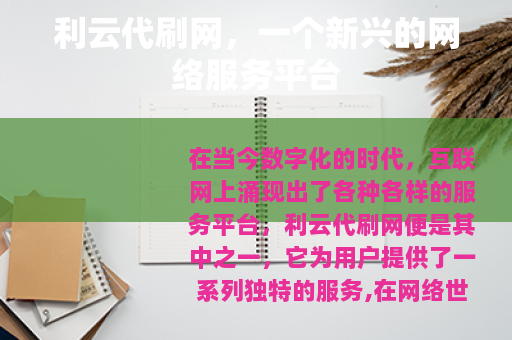 在当今数字化的时代,互联网上涌现出了各种各样的服务平台,利云代刷网便是其中之一,它为用户提供了一系列独特的服务,在网络世界中逐渐崭露头角。