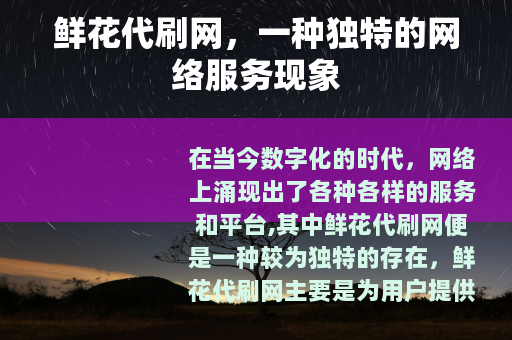 在当今数字化的时代,网络上涌现出了各种各样的服务和平台,其中鲜花代刷网便是一种较为独特的存在。
