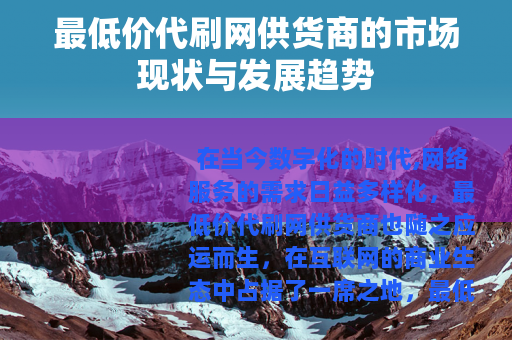 在当今数字化的时代,网络服务的需求日益多样化,最低价代刷网供货商也随之应运而生,在互联网的商业生态中占据了一席之地。