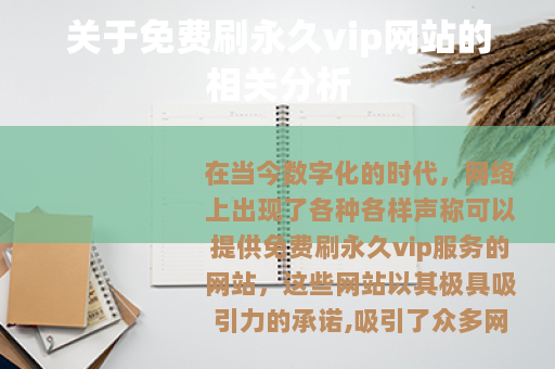 在当今数字化的时代,网络上出现了各种各样声称可以提供免费刷永久vip服务的网站,这些网站以其极具吸引力的承诺,吸引了众多网民的目光。