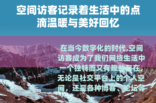 空间访客是我们网络生活中不可或缺的一部分,他们为我们的数字空间增添了生机与活力,让我们在虚拟的世界里也能感受到真实的情感交流和人际关系的温暖,让我们珍惜每一位空间访客,用心去经营和维护我们的数字家园,让这份美好永远延续下去。