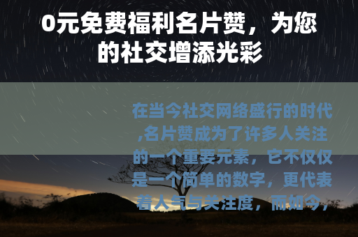 在当今社交网络盛行的时代,名片赞成为了许多人关注的一个重要元素,它不仅仅是一个简单的数字,更代表着人气与关注度,而如今,0元免费福利名片赞的出现,为广大用户带来了意想不到的惊喜。