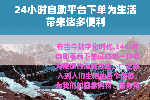 在当今数字化时代,24小时自助平台下单已成为一种极为便捷的消费方式,广泛融入到人们生活的各个角落,为我们的日常购物、服务预订等带来了前所未有的便利。