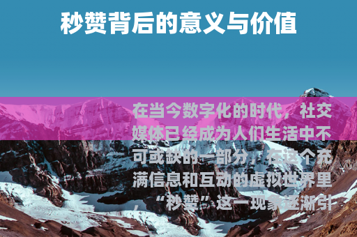 在当今数字化的时代,社交媒体已经成为人们生活中不可或缺的一部分,在这个充满信息和互动的虚拟世界里,“秒赞”这一现象逐渐引起了人们的广泛关注,秒赞,就是在极短的时间内对他人发布的内容给予点赞的行为,它看似只是一个小小的动作,却蕴含着丰富的意义和价值,对个人和社会都产生了多方面的影响。 的创作者而言,秒赞是一种极大的鼓励和认可,当他们精心创作的文字、图片或视频在瞬间获得大量的点赞时,内心会涌起一种满足感和成就感,这种积极的反馈会激发他们继续创作的热情,促使他们不断提升自己的创作水平,为社交平台带来更多优质的内容,比如一位摄影爱好者,他花费了大量的时间和精力去拍摄一组美丽的风景照片,并将其分享在社交媒体上,如果这些照片能够在短时间内获得众多的秒赞,那么他会感到自己的努力得到了回报,从而更加坚定自己在摄影道路上的追求,可能会去探索更多独特的拍摄角度和场景,为大家呈现出更精彩的作品。