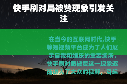 在当今的互联网时代,快手等短视频平台成为了人们展示自我和娱乐的重要场所,快手刷对局被赞这一现象逐渐进入了大众的视野,引起了众多用户的兴趣和讨论。