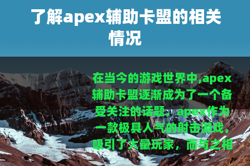 在当今的游戏世界中,apex辅助卡盟逐渐成为了一个备受关注的话题,apex作为一款极具人气的射击游戏,吸引了大量玩家,而与之相关的辅助卡盟也应运而生。
