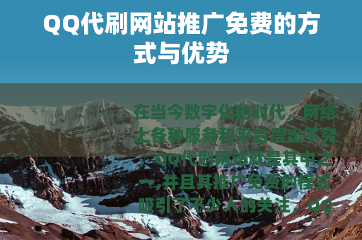 在当今数字化的时代,网络上各种服务和平台层出不穷,QQ代刷网站就是其中之一,并且其推广免费的模式吸引了不少人的关注。