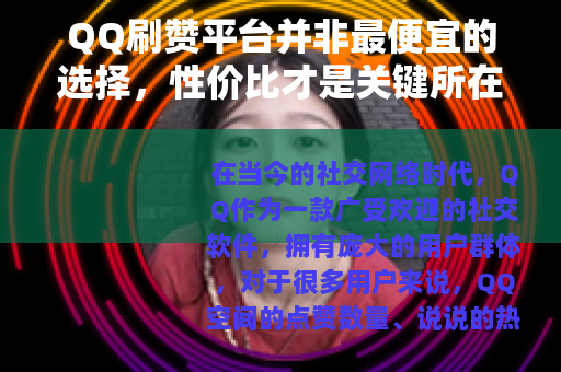 在当今的社交网络时代,QQ作为一款广受欢迎的社交软件,拥有庞大的用户群体,对于很多用户来说,QQ空间的点赞数量、说说的热度等都成为了他们关注的焦点,市场上出现了各种各样的QQ刷赞平台,声称可以以最低的价格为用户提供大量的点赞服务,让用户的QQ空间瞬间变得热闹非凡,事实真的如此吗?
