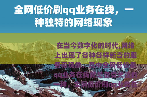 在当今数字化的时代,网络上出现了各种各样新奇的服务和现象,其中全网低价刷qq业务在线就是备受关注的一种。