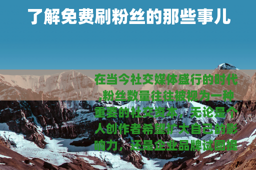 在当今社交媒体盛行的时代,粉丝数量往往被视为一种重要的社交资本,无论是个人创作者希望扩大自己的影响力,还是企业品牌试图提升知名度,拥有大量的粉丝都被看作是成功的一个标志,而“免费刷粉丝”这个话题,也因此受到了不少人的关注。