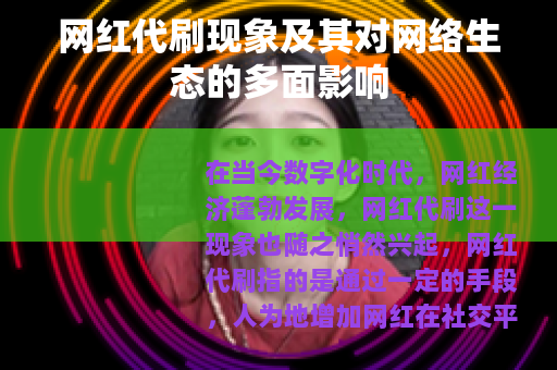 网红代刷是网红经济发展过程中出现的一种现象,它既有一定的积极作用,也带来了诸多负面影响,我们需要客观地看待它,通过各方的共同努力,规范网红代刷行为,促进网红经济的健康、可持续发展,让网络生态更加公平、有序和繁荣,才能让网红经济真正发挥其应有的价值,为社会和经济的发展做出更大的贡献。