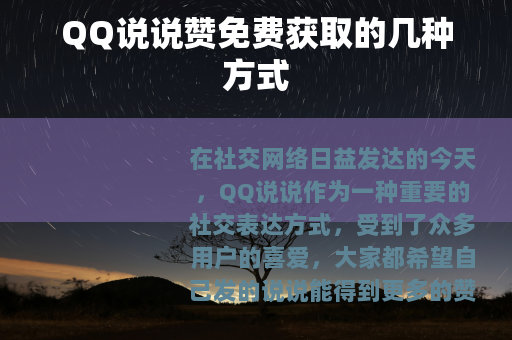 在社交网络日益发达的今天,QQ说说作为一种重要的社交表达方式,受到了众多用户的喜爱,大家都希望自己发的说说能得到更多的赞,这不仅能增加自己的人气,还能让自己的心情和想法得到更多人的关注和认可,而今天,我们就来聊一聊如何免费获取QQ说说赞,且一次能获得20个赞的方法。
