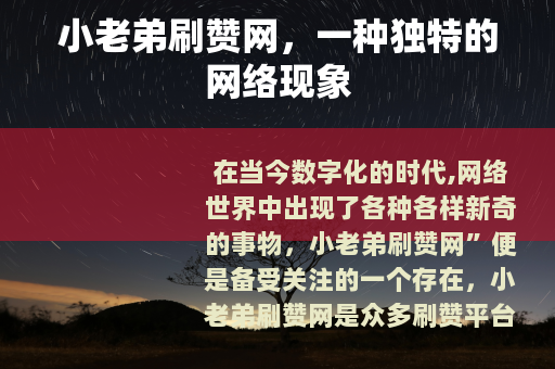 在当今数字化的时代,网络世界中出现了各种各样新奇的事物,小老弟刷赞网”便是备受关注的一个存在。