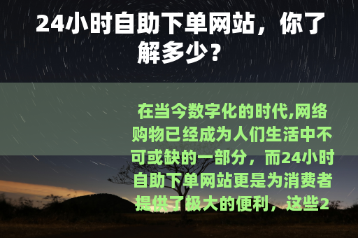 在当今数字化的时代,网络购物已经成为人们生活中不可或缺的一部分,而24小时自助下单网站更是为消费者提供了极大的便利。