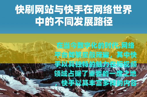 在当今数字化的时代,网络平台如繁星般璀璨,其中快手以其独特的魅力在短视频领域占据了重要的一席之地,快手以其丰富多样的内容和便捷的创作方式,吸引了数以亿计的用户,它为普通人提供了一个展示自我、分享生活的舞台,让无数有才华的人得以在这个平台上发光发热。