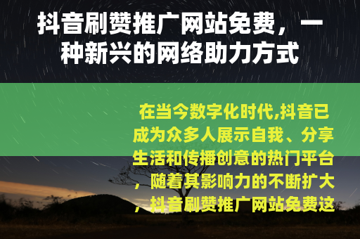在当今数字化时代,抖音已成为众多人展示自我、分享生活和传播创意的热门平台,随着其影响力的不断扩大,抖音刷赞推广网站免费这一现象也逐渐走入大众视野。