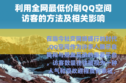 在当今社交网络盛行的时代,QQ空间作为许多人展示自我和与朋友互动的重要平台,访客数量往往被视为一种人气和受欢迎程度的象征,而全网最低价刷QQ空间访客的服务也随之应运而生,这一现象引发了不少人的关注和兴趣。
