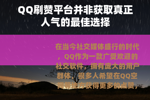 在当今社交媒体盛行的时代,QQ作为一款广受欢迎的社交软件,拥有庞大的用户群体,很多人希望在QQ空间等地方获得更多的点赞,以展示自己的人气和影响力,于是QQ刷赞平台应运而生,我们需要理性看待这些所谓的刷赞平台,明白它们并非是实现目标的理想途径。