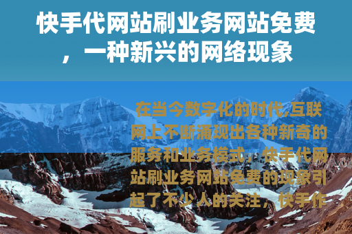 在当今数字化的时代,互联网上不断涌现出各种新奇的服务和业务模式,快手代网站刷业务网站免费的现象引起了不少人的关注。