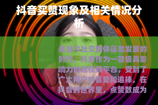 买赞抖音赞是一个复杂的现象,它在抖音的发展过程中既有积极的一面,也有消极的一面,我们需要客观、全面地看待它,通过合理的引导和管理,让其在符合平台规则和用户利益的前提下,发挥出一定的作用,为抖音平台的发展和用户的体验增添更多的活力和色彩,抖音才能在未来的发展中不断创新和进步,成为一个更加优秀、更加受欢迎的社交媒体平台。