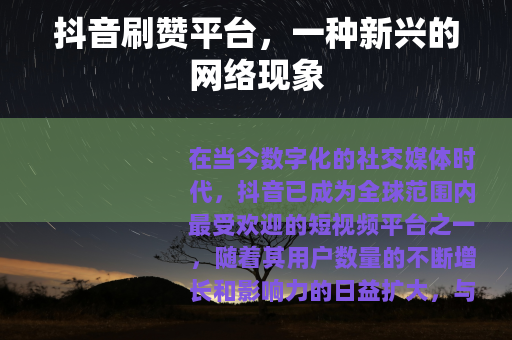 在当今数字化的社交媒体时代,抖音已成为全球范围内最受欢迎的短视频平台之一,随着其用户数量的不断增长和影响力的日益扩大,与之相关的各种现象也应运而生,其中抖音刷赞平台便是一个备受关注的话题。