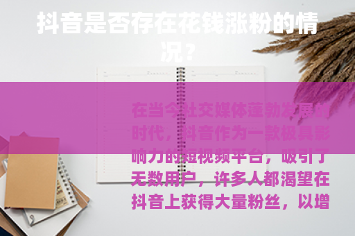 在当今社交媒体蓬勃发展的时代,抖音作为一款极具影响力的短视频平台,吸引了无数用户,许多人都渴望在抖音上获得大量粉丝,以增加自己的影响力和实现各种目标,抖音有没有花钱涨粉这种现象呢?