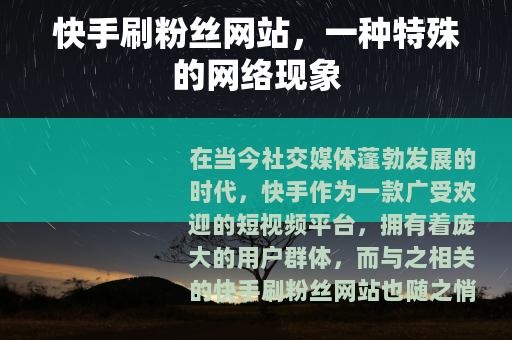 在当今社交媒体蓬勃发展的时代,快手作为一款广受欢迎的短视频平台,拥有着庞大的用户群体,而与之相关的快手刷粉丝网站也随之悄然兴起,成为了一个引人注目的网络现象。
