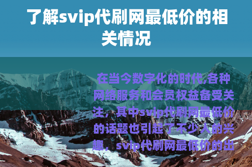在当今数字化的时代,各种网络服务和会员权益备受关注,其中svip代刷网最低价的话题也引起了不少人的兴趣。