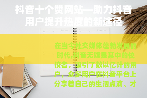 在当今社交媒体蓬勃发展的时代,抖音无疑是其中的佼佼者,吸引了数以亿计的用户,众多用户在抖音平台上分享着自己的生活点滴、才艺表演和各种创意内容,都渴望能够获得更多的关注和点赞,从而提升自己在平台上的影响力,而抖音十个赞网站,便在这样的需求下应运而生,为广大抖音用户提供了一种新的助力方式。