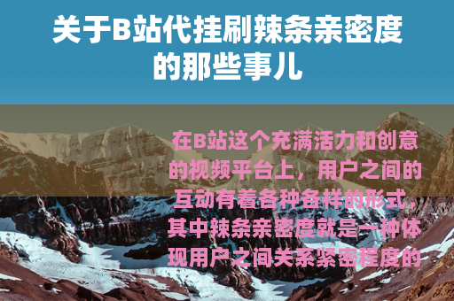 在B站这个充满活力和创意的视频平台上,用户之间的互动有着各种各样的形式,其中辣条亲密度就是一种体现用户之间关系紧密程度的方式,而近年来,出现了一种名为B站代挂刷辣条亲密度的服务,引起了不少用户的关注。