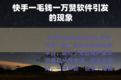 在当今的短视频时代,快手作为一款广受欢迎的短视频平台,吸引了无数用户展示自我和分享生活,而与此同时,一种声称“快手一毛钱一万赞”的软件也悄然出现在人们的视野中。
