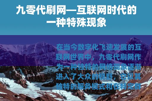 在当今数字化飞速发展的互联网世界中,九零代刷网作为一种独特的网络现象逐渐进入了大众的视野,它以其独特的服务模式和在特定群体中的影响力,引发了人们的关注与讨论。