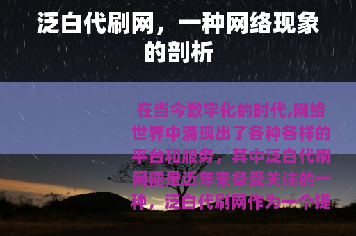 在当今数字化的时代,网络世界中涌现出了各种各样的平台和服务,其中泛白代刷网便是近年来备受关注的一种,泛白代刷网作为一个提供特定网络服务的平台,在网络的众多角落中逐渐崭露头角。