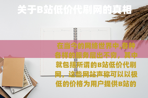 在当今的网络世界中,各种各样的服务层出不穷,其中就包括所谓的B站低价代刷网,这些网站声称可以以极低的价格为用户提供B站的点赞、评论、播放量等数据的提升服务,看似为用户提供了一条快速获取关注和流量的捷径,但实际上却隐藏着诸多问题。