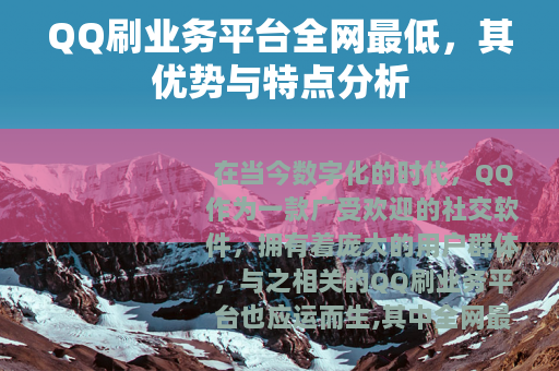 在当今数字化的时代,QQ作为一款广受欢迎的社交软件,拥有着庞大的用户群体,与之相关的QQ刷业务平台也应运而生,其中全网最低的平台更是吸引了众多用户的目光。