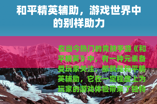 在当今热门的竞技手游《和平精英》中,有一种元素备受玩家关注,那就是和平精英辅助,它在一定程度上为玩家的游戏体验带来了独特的影响。