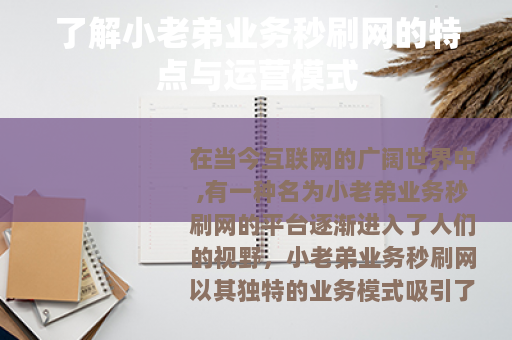 在当今互联网的广阔世界中,有一种名为小老弟业务秒刷网的平台逐渐进入了人们的视野,小老弟业务秒刷网以其独特的业务模式吸引了不少用户的关注。