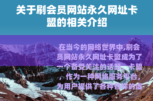 在当今的网络世界中,刷会员网站永久网址卡盟成为了一个备受关注的话题,卡盟,作为一种网络服务平台,为用户提供了各种各样的虚拟商品交易服务,其中刷会员业务在一定程度上满足了部分用户对于特定会员权益的需求。