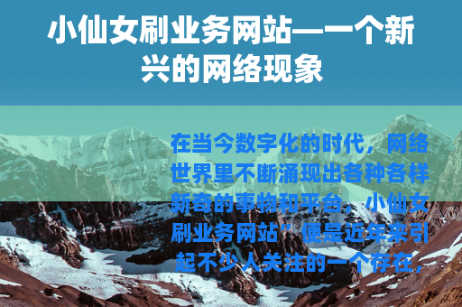 在当今数字化的时代,网络世界里不断涌现出各种各样新奇的事物和平台,小仙女刷业务网站”便是近年来引起不少人关注的一个存在。