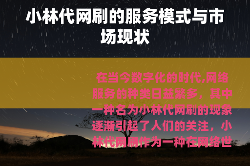 在当今数字化的时代,网络服务的种类日益繁多,其中一种名为小林代网刷的现象逐渐引起了人们的关注,小林代网刷作为一种在网络世界中提供特定服务的模式,有着其独特的运营方式和在市场中存在的意义。