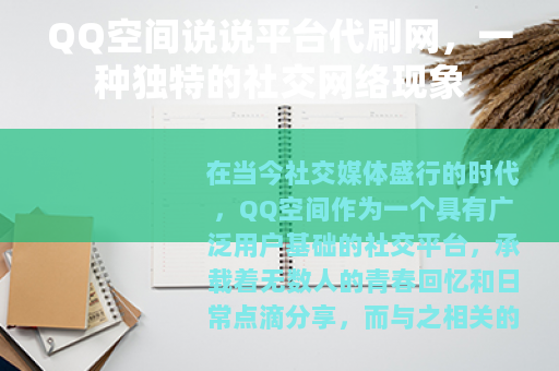 在当今社交媒体盛行的时代,QQ空间作为一个具有广泛用户基础的社交平台,承载着无数人的青春回忆和日常点滴分享,而与之相关的QQ空间说说平台代刷网也悄然兴起,成为了一个值得关注的网络现象。