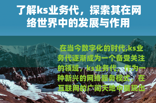 在当今数字化的时代,ks业务代逐渐成为一个备受关注的领域,ks业务代,作为一种新兴的网络服务模式,在互联网的广阔天地中展现出了独特的魅力和发展潜力。